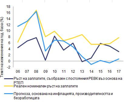 Растежът на номиналните заплати в България в сравнение с референтните показатели за заплатите
