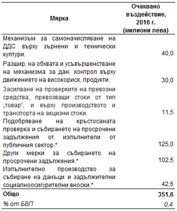 4.1.1.Въздействие на мерките за подобряване на събирането на данъците през 2016 г.24