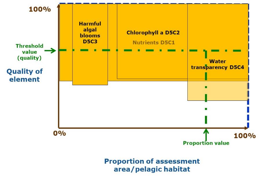 Figure A2.5: Illustrative example of GES quality/proportion for D5 criteria and pelagic habitats.