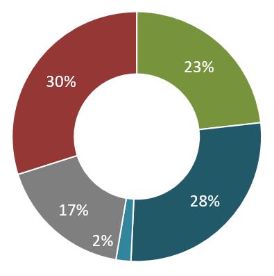 Obrázek 9: Rozdělení kategorií tlaků na úrovni 1 mezi stanoviště, jiné druhy než ptáky a ptáky