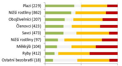 Pozn.: Statistiky vycházející z řady hodnocení druhů na úrovni EU (2 825).