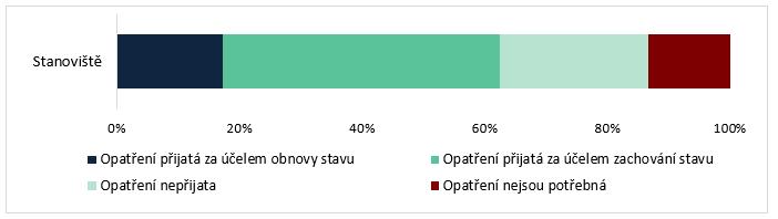 ·přibližně u 60 % stanovišť členských států byla nezbytná opatření vykázána jako přijatá, a to především k zachování současného stavu nebo k obnově struktury a funkcí stanovišť; pouhá 4 % opatření, která byla vykázána jako přijatá, by měla zvětšit území stanoviště,