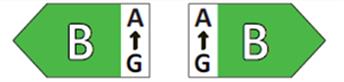 Obrázek 2: Příklad levé/pravé barevné šipky s uvedením rozpětí tříd energetické účinnosti