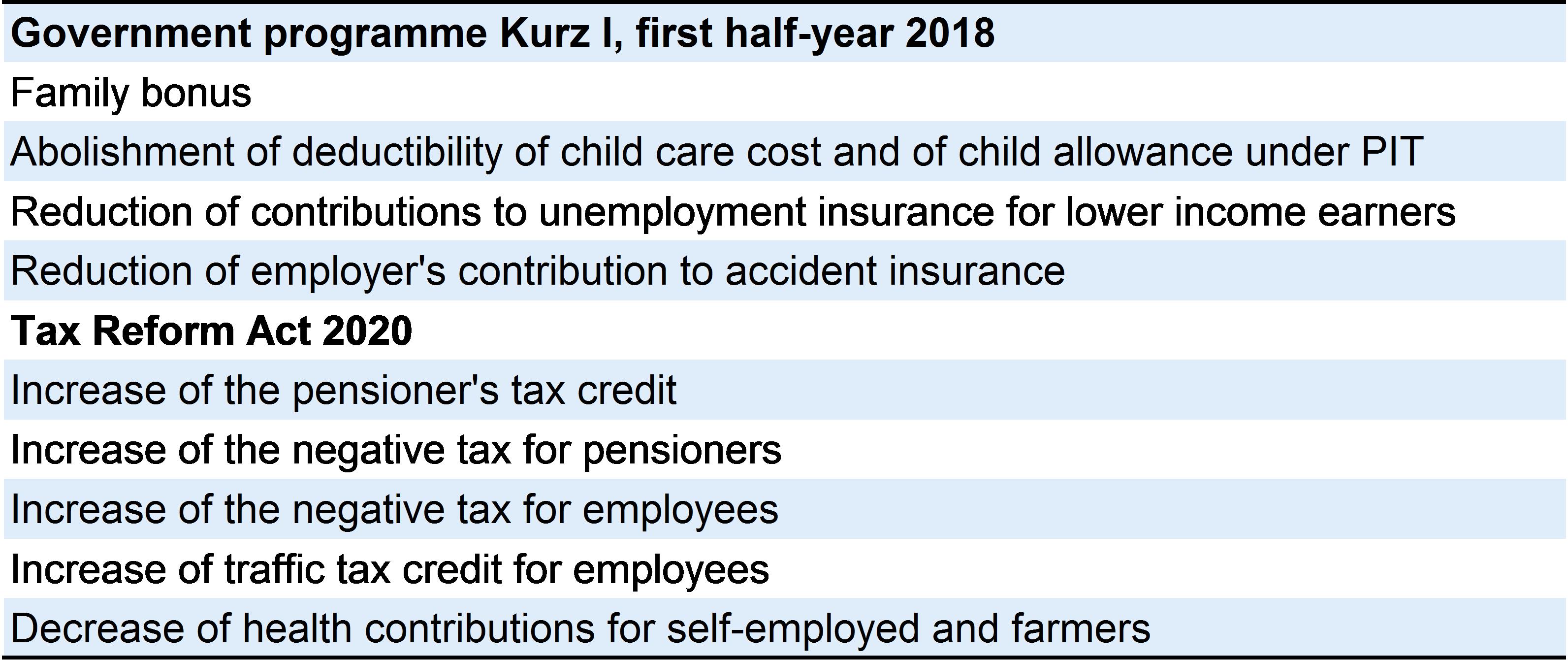 Table 3.1.1:Measures to reduce the tax wedge on labour