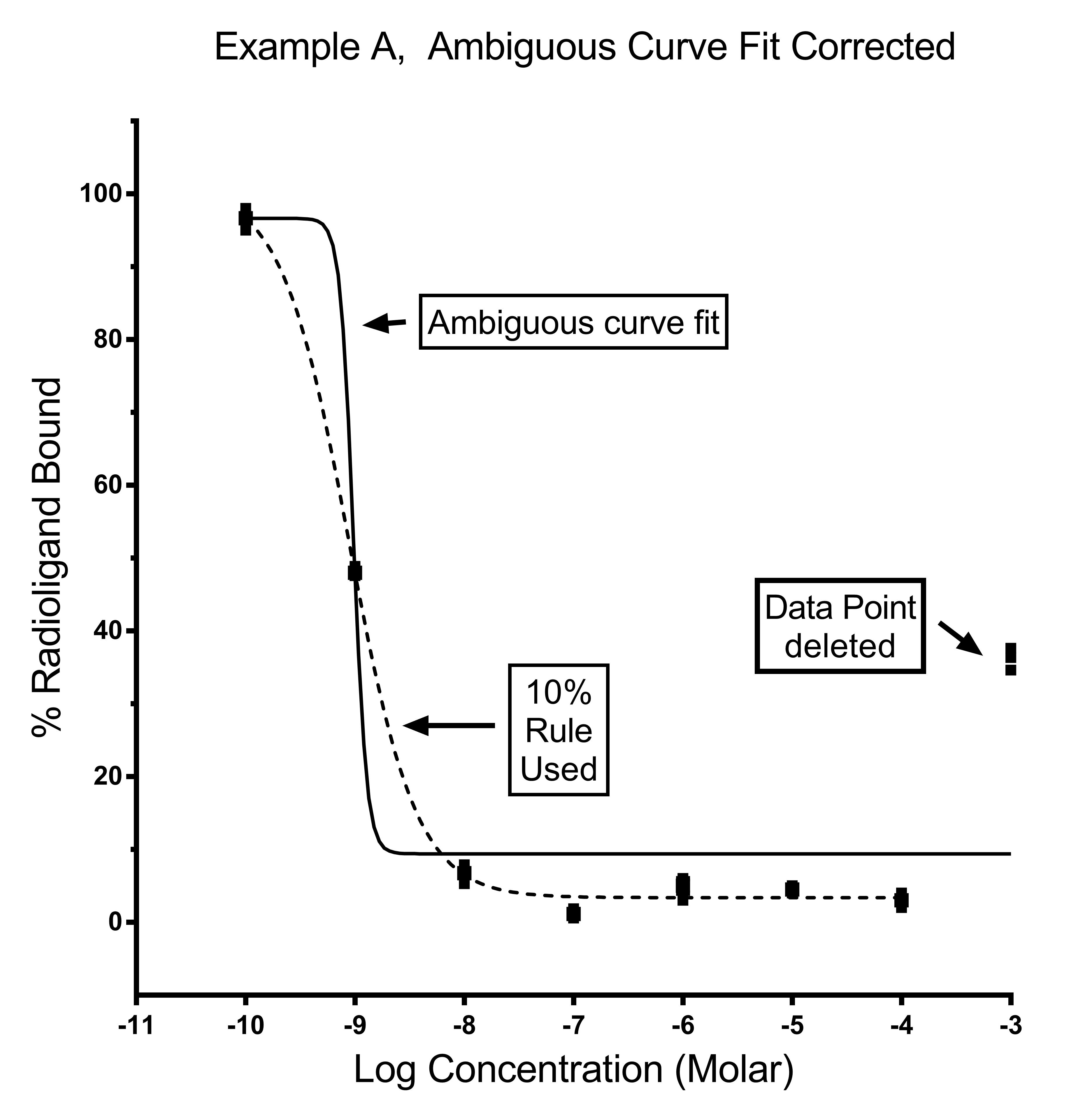 Figure 2: Examples, Competitive Binding Curves with and without Use of the 10% Rule.