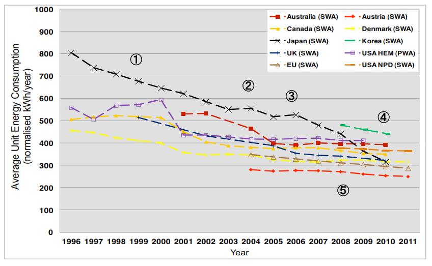 Life cycle cost over the whole lifetime of a product, including purchase cost and energy costs