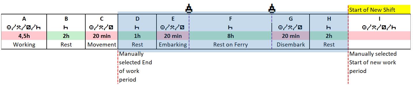 The VU shall compute the daily driving time(s) for the ongoing and previous RTM-shifts. The driving time occurring during the interruptions of the daily rest periods shall not be added to the computation of the daily driving time, when such interruptions are due to ferry/train crossing and the requirements provided for in paragraphs (h) and (j) of point 2 and in point 3 have been fulfilled. Nevertheless, insofar as a complete regular or split daily rest period has not been computed by the VU according to point 3, the driving times occurring during the interruptions shall be added to the daily driving time for the ongoing RTM-shift.