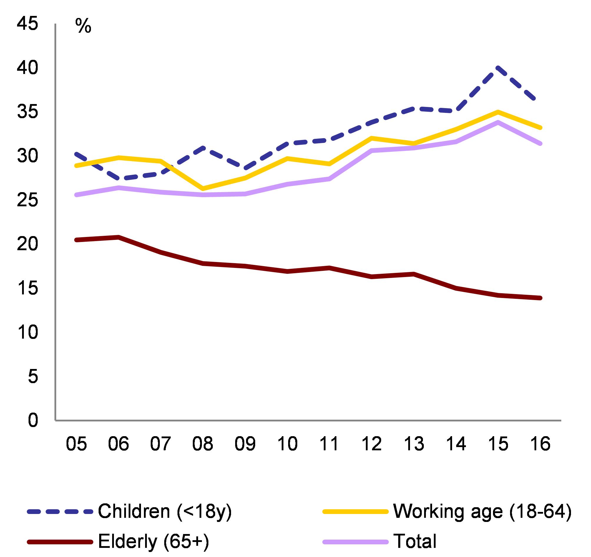 At risk of poverty and social exclusion and its subcomponents