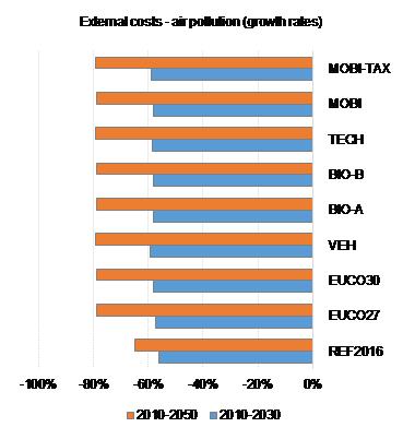 Figure 16: External costs of air pollution and noise for 2010-2030 and 2010-2050