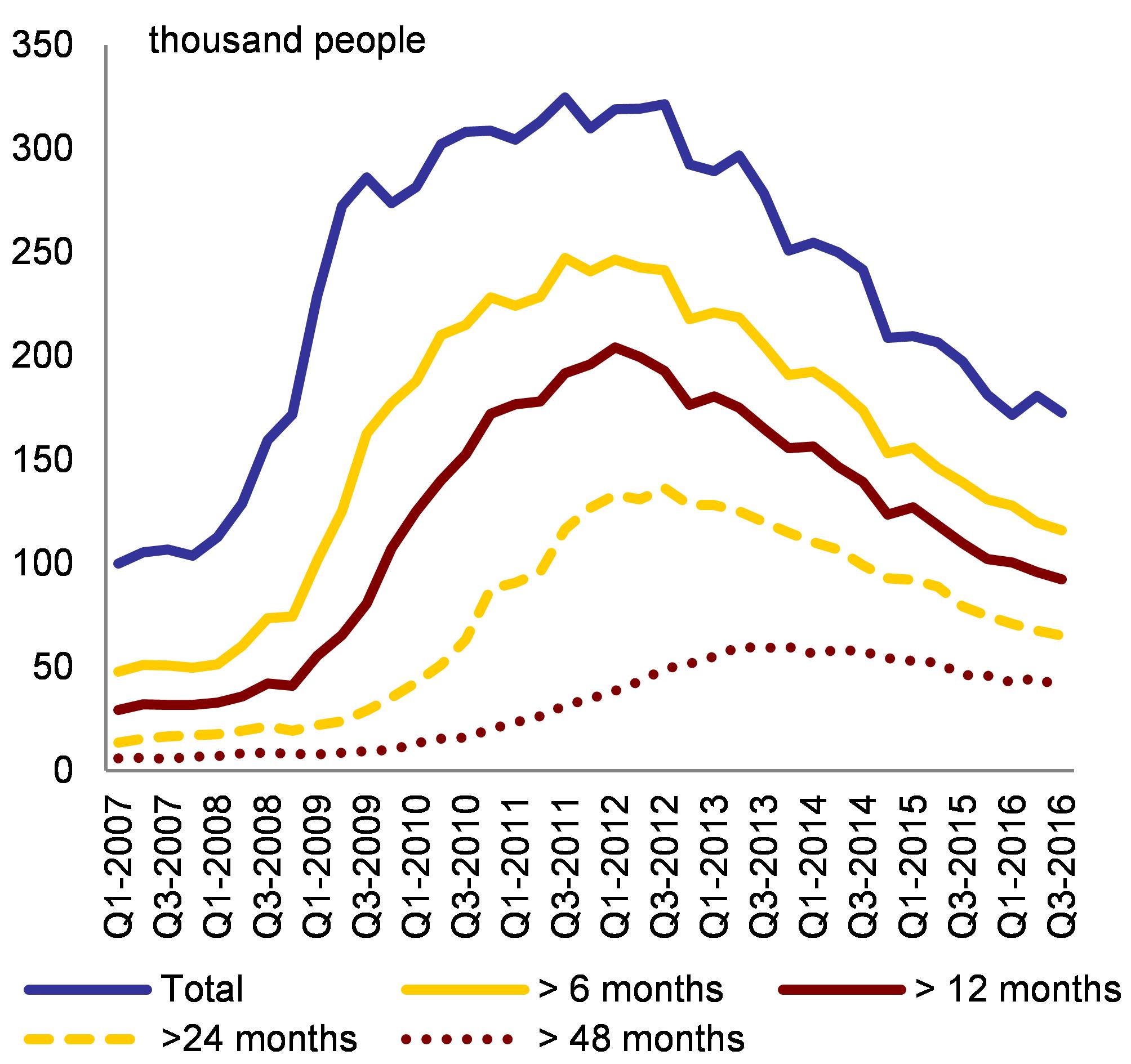 Unemployment has continued to fall but labour market and social challenges remain. Longterm unemployment has also declined further and the youth unemployment rate has fallen below the EU average. In 2016, the country experienced net inward migration for the first time since 2009. This is in addition to sizeable natural population growth of about 0.8 %. However, verylongterm unemployment (over two years) amounted to more than 40 % of all unemployment in 2015 and labour market participation has increased only marginally, despite the strong recovery. However, notwithstanding the progress so far, some households continue to experience poverty and social exclusion.