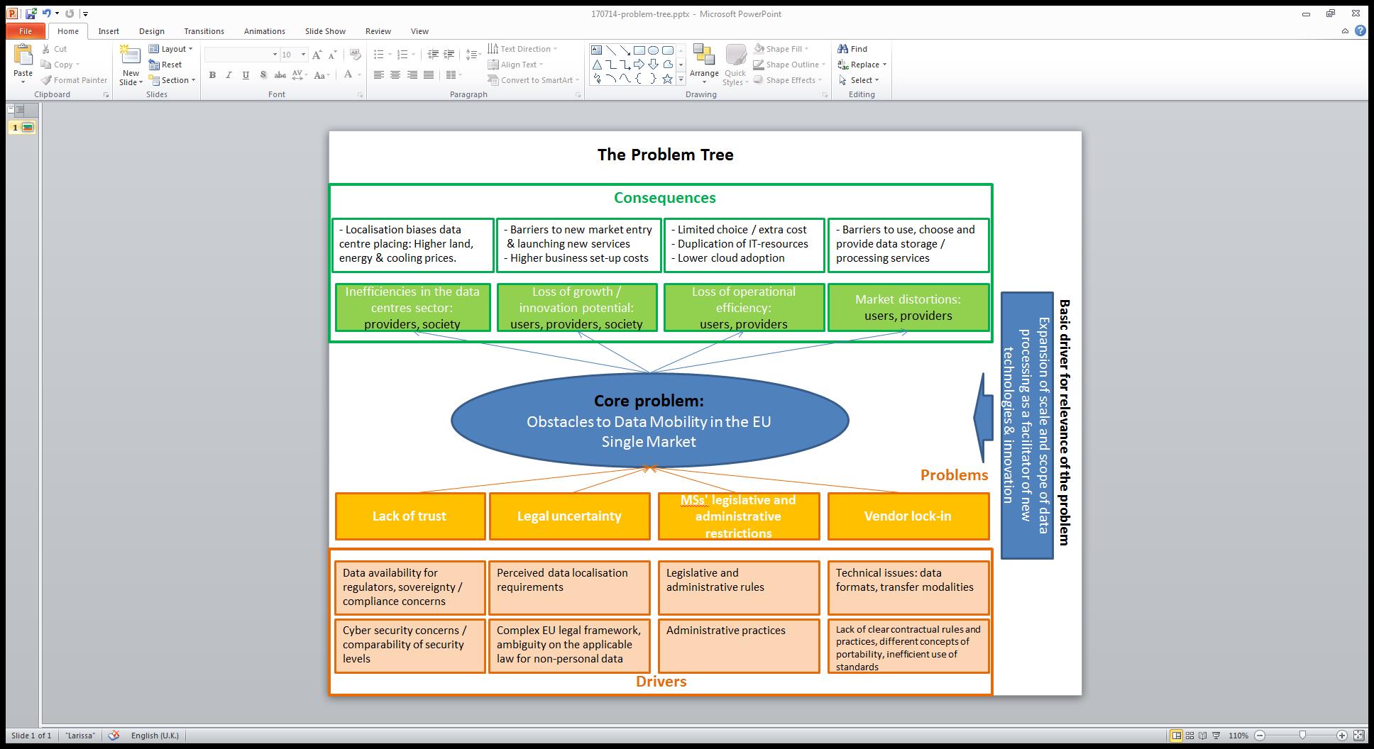 Making use of the Better Regulation toolbox, the Commission services conducted an extensive analysis of the core problem and its drivers. On the basis of evidence supplied by the public online consultation, the structured dialogues with the Member States and other stakeholders, dedicated support studies, external studies and available data, the Commission services have verified the existence of four underlying problems that cause obstacles to data mobility.