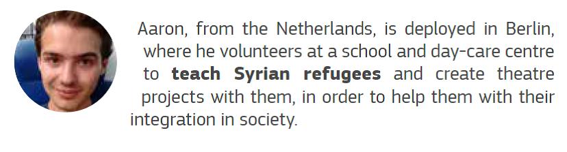 Volunteering supported by the Erasmus+ together with eight other EU programmes and instruments contributed to the creation of further opportunities for young people under the European Solidarity Corps. One year since its launch, more than 42 000 young people from all Member States have signed up. By the end of 2017, one year since the opening of the online registration tool, more than 2 500 placements have been offered to the young people6.