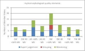 In operational monitoring, quality elements in rivers are assessed that are most sensitive to the prevalent pressures. Such a quality element can then be used as the least common denominator for comparable assessments of ecological status, provided that the Intercalibration has been successful. The information reported to WISE by the EU Member States in each iRBD were compared