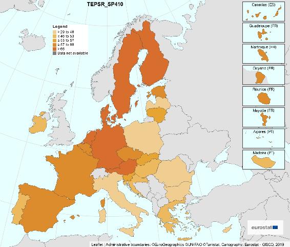 Note: Breakdowns at the regional (NUTS 2) level. If the regional (NUTS 2) breakdown is not available or is statistically unreliable the NUTS 1 or the national level is presented in the maps.