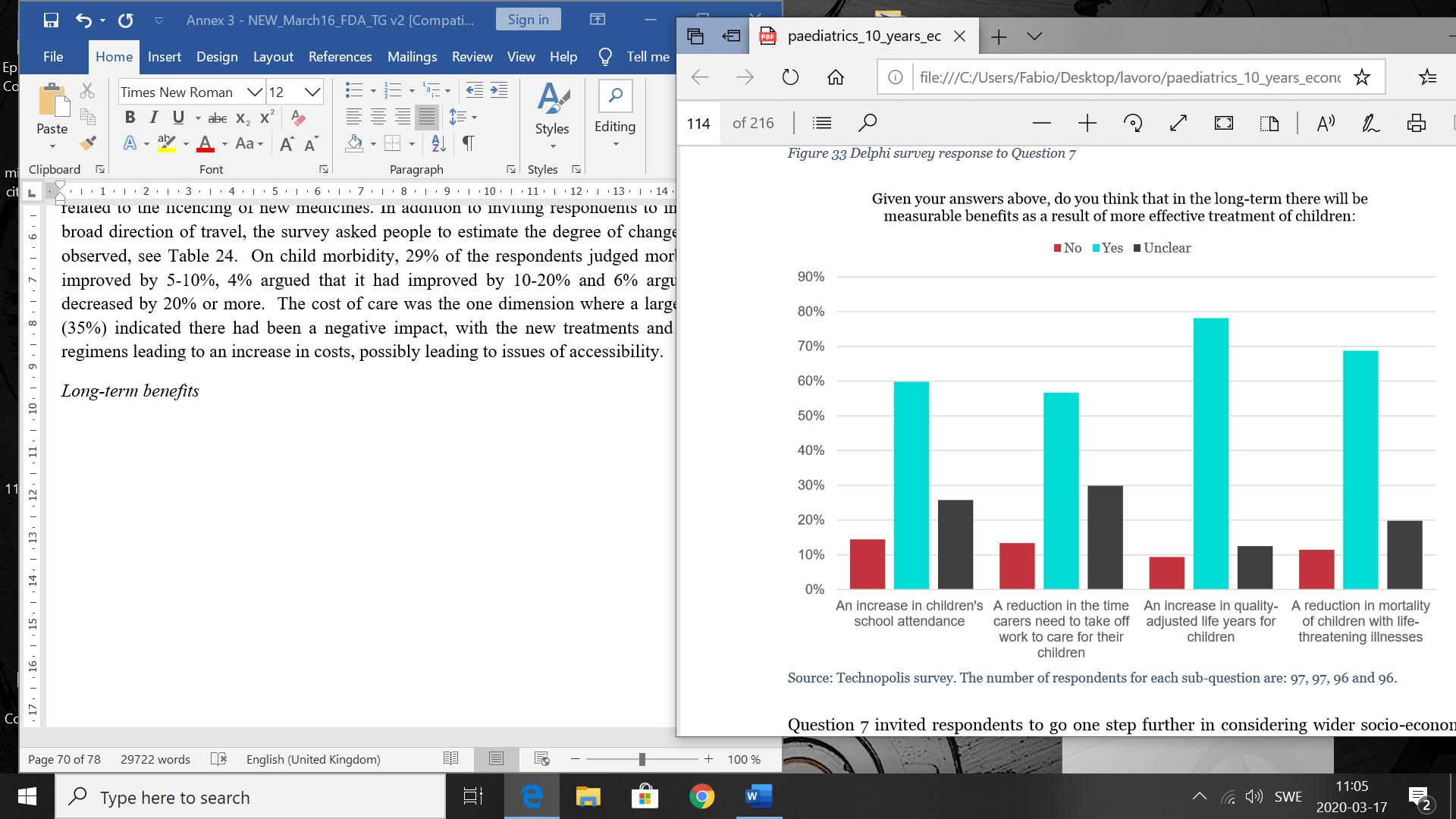 In addition to data collected via the survey to industry, the analysis builds on a two-stage survey (Delphi) to expert stakeholders. The survey questionnaire was sent to experts from across the EU, with 116 people ultimately completing the survey (Phase I Delphi), although some respondents did not answer every question. The background and paediatric sub-speciality of Phase I and Phase II participants are presented in Appendix D. The survey to expert stakeholders was developed based on an exploratory telephone consultations and pilots to uncover issues linked to social and broader economic impacts in the paediatric drug development value chain. The survey collected qualitative and quantitative estimates for the various dimensions of the impact as well as provided a set of open questions to identify further benefits of the Regulation and their impact channels.
