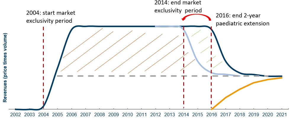 The assessment of the economic value of the reward is based on the following key assumption. As a result of the market exclusivity extension, there is a delay in the shift from the (higher) monopoly prices to the (lower) competitive market prices. This delay in the change of price is calculated to represent the economic value of the rewards.