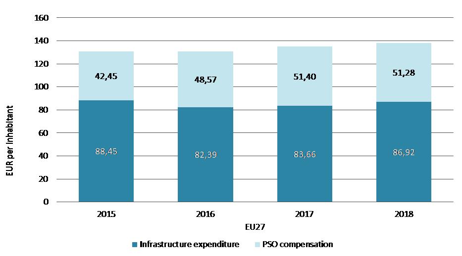 Figure 4: Cost of railways per inhabitant (infrastructure expenditure plus PSO compensation) 2015-2018