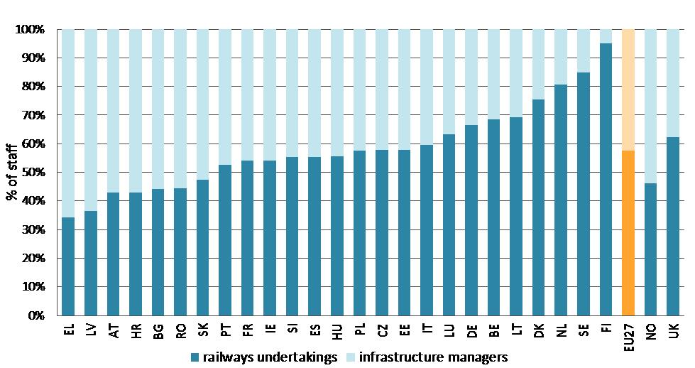 The rail sector makes a substantial contribution to EU27 economic and social cohesion, directly employing more than 900 000 people and moving some 1.6 billion tonnes of freight and 7.1 billion passengers each year.