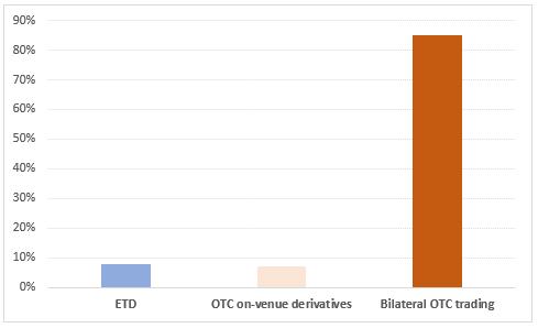 ETDs are often the benchmark (reference price) indices for a broad range of underlying assets (e.g. bonds, shares, commodities such as energy or oil and soft commodities such as coffee or sugar), including the wider OTC derivatives associated with those assets. ETDs are derivative contracts offered for trading on stock exchanges, characterised by a high degree of standardisation as they are created by and are specific to an exchange, traded under the rules of that exchange and cleared in the clearing infrastructure (CCP) used by that exchange. ETD trading ensures liquidity while ETD clearing facilitates management of counterparty risk over the life of the contract, which can span several years or more. The value of the derivative fluctuates with the price of the underlying of the contract.