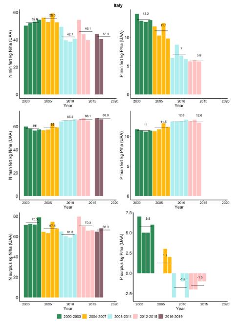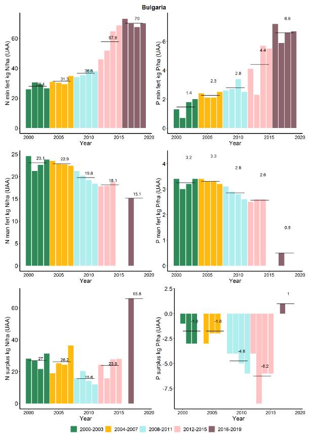 Table 17: Gross phosphate balance per hectare UAA (kg/ha P - UAA) in the periods 2008-2011, 2012-2015 and 2015-2019, and the change between the periods in kg N per ha (Source: Eurostat, December 2020).30