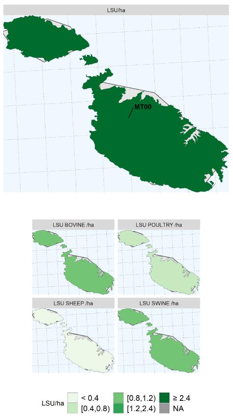 Table 9: Livestock density index (LU per ha UAA) in 2010, 2013 and 2016, and the change between the years (Source: Eurostat, December 2020).17