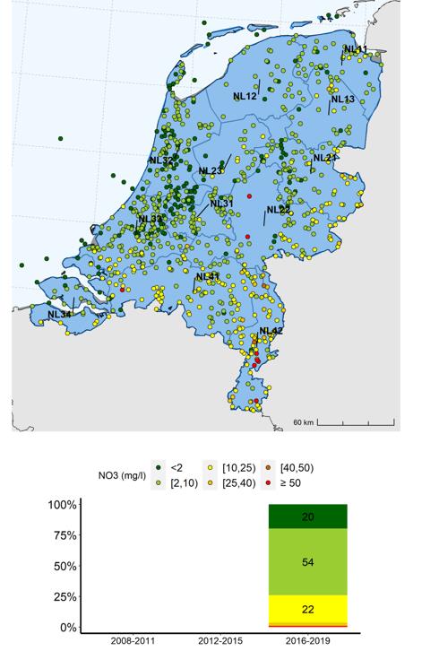 Map 8: Annual average nitrate concentrations in groundwater for the reporting period 2016-2019.48
