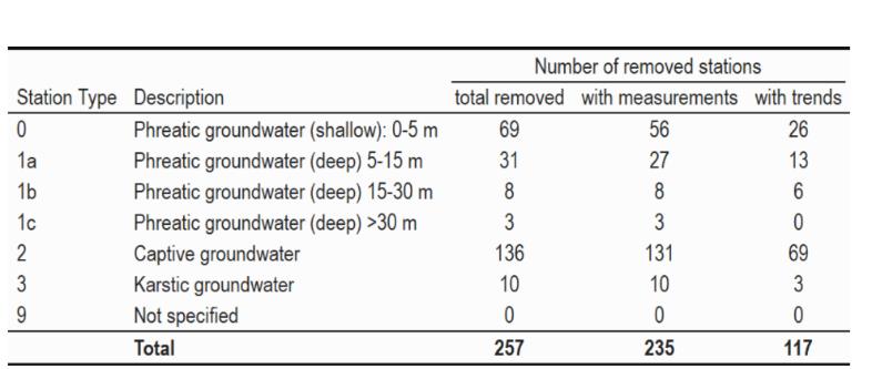 Figure 42. GW removed stations map (top graph) and distribution by groundwater type (lower graph). In the map in blue the NVZ.