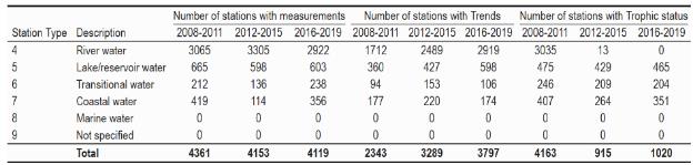 Table 6. Number of SW stations with measurements, trends and trophic status per type