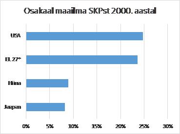 Lõpuks tuleb arvesse võtta kogu maailma majandusprognoosi. EL jääb globaalseks majanduslikuks jõuks ja kestliku majanduskasvu eestvedajaks. OECD viimased pikaajalised prognoosid näitavad, et euroala reaalne SKP kasvab järgmise kümne aasta jooksul 1,4 % aastas (aasta kasvumäära aritmeetiline keskmine). Sellest hoolimata varjutavad neid kasvuväljavaateid arengusuunad teistes piirkondades ja Euroopa suhteline positsioon rahvusvahelises majanduses muutub. Juba 2024. aastal peaks 85 % maailma SKP kasvust tulema väljastpoolt ELi. Hiina jätkuv tõus mõjutab järgmise kümne aasta jooksul oluliselt maailmamajanduse arengut – OECD prognoosi kohaselt kasvab Hiina SKP 4,7 % aastas.