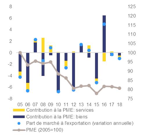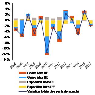 Évolution des parts de marché à l’exportation de marchandises