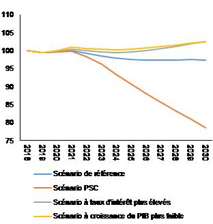 Projections et scénarios à moyen terme concernant la dette publique (en % du PIB)