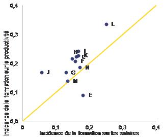 Augmentation potentielle des salaires et de la productivité par secteur imputable à un renforcement de la formation (2008-2017)