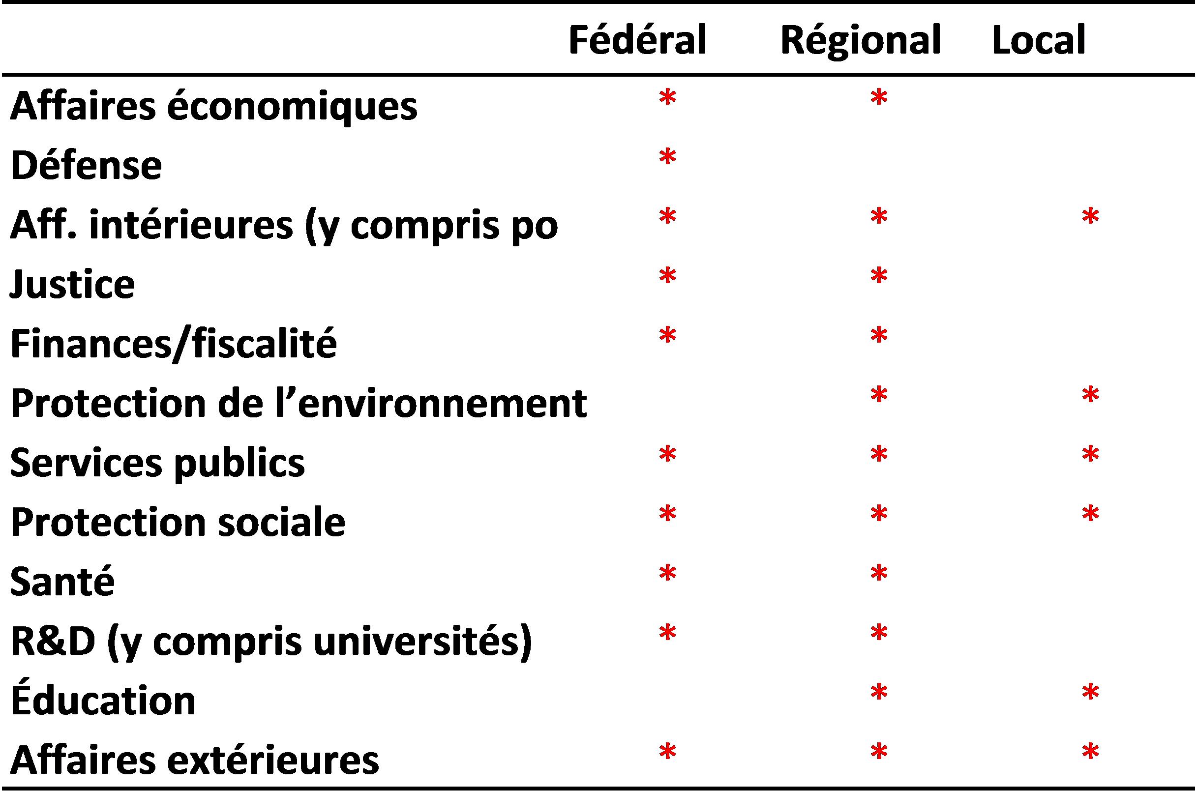 Tableau 3.4.1:Répartition des compétences entre les différents niveaux de pouvoir - Financement