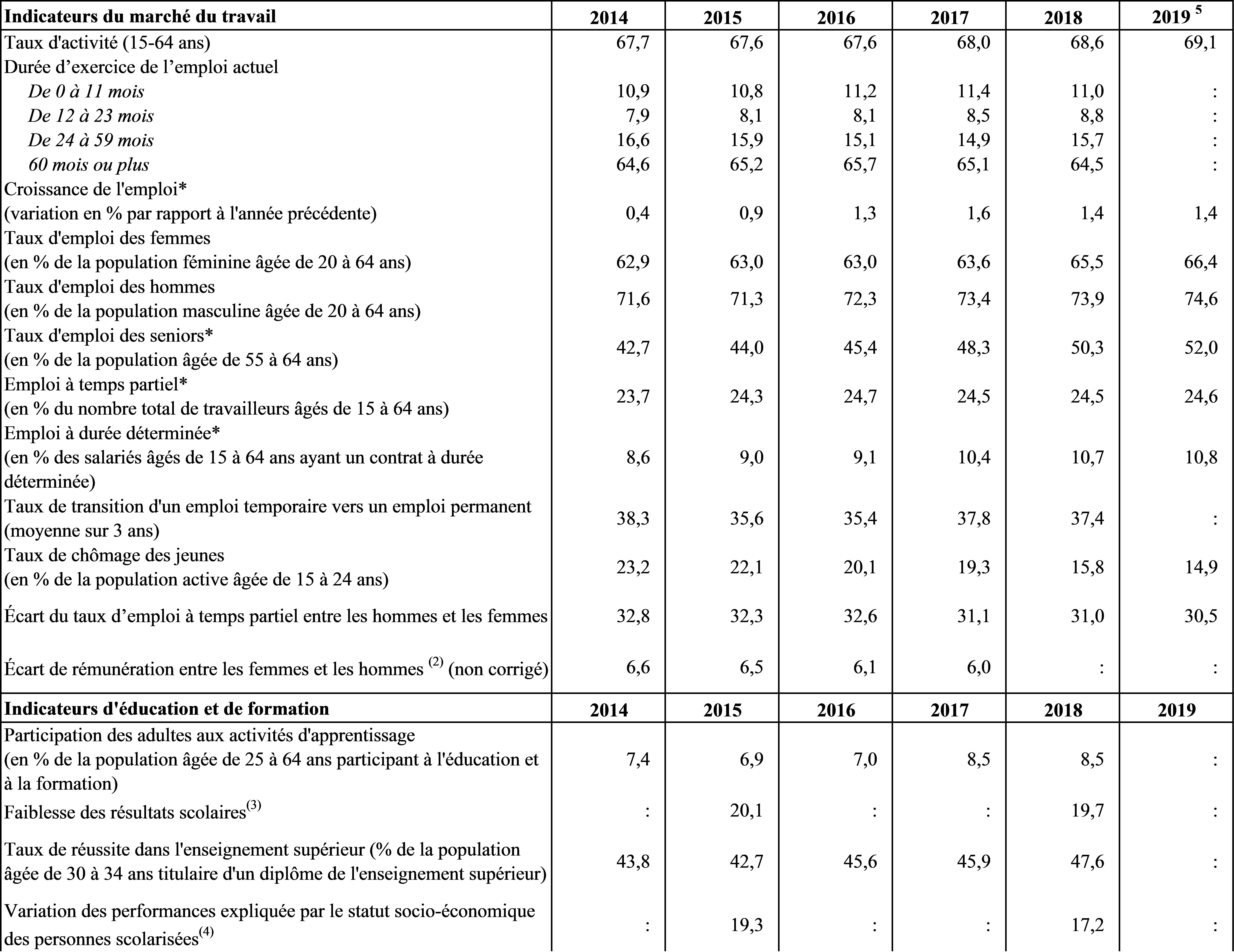 Indicateurs clés du marché du travail