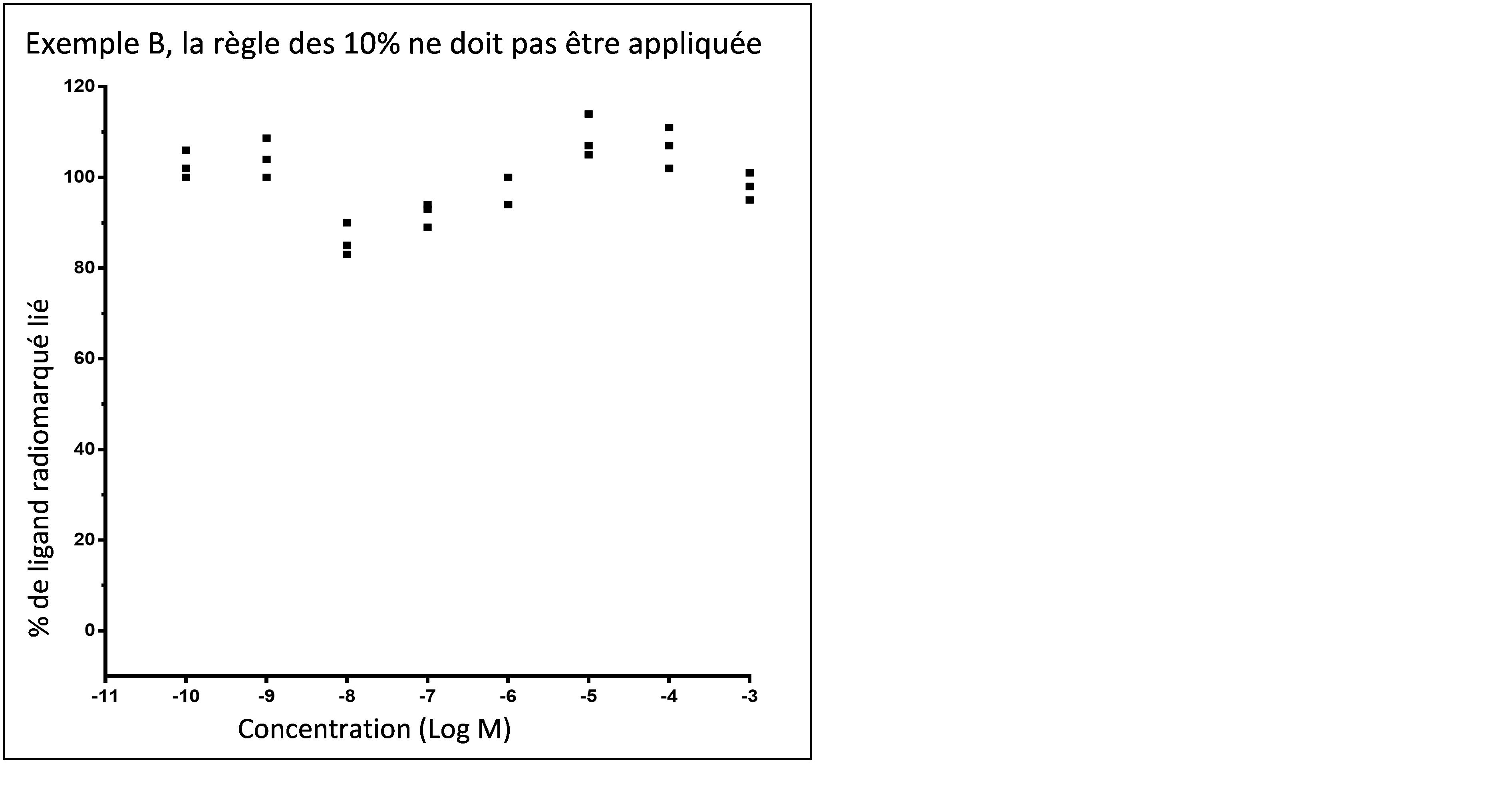 Souvent, en particulier chez les mâles normaux, il n’est pas évident de savoir comment consigner les résultats obtenus pour des valeurs faibles. Dans ces cas, un intervalle de confiance à 95 % est utilisé pour déterminer s’il faut indiquer une valeur «zéro» ou un autre chiffre. Si le résultat de l’échantillon est compris dans l’intervalle de confiance de l’étalon zéro (Bo), il faut lui attribuer la valeur «zéro». Le seuil minimal de détection correspondra à l’étalon le plus bas qui est systématiquement différent de l’étalon zéro; autrement dit, les deux intervalles de confiance ne se chevauchent pas. Si le résultat de l’échantillon se situe à l’intérieur ou au-dessus de l’intervalle de confiance du seuil minimal de détection, la valeur calculée sera notée. Si un échantillon est compris entre l’étalon zéro et les intervalles de confiance du seuil minimal de détection, la moitié du seuil minimal de détection est notée en ce qui concerne la valeur de cet échantillon.