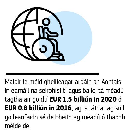 Tá acmhainneacht ard in earnáil an chúraim tuilleadh post a chruthú, mar gheall ar aosú an daonra go háirithe. Ba ghá breis agus 1.6 milliún oibrí cúraim fhadtéarmaigh a chur leis faoi 2050 chun cumhdach cúraim fhadtéarmaigh a choimeád ar an leibhéal céanna. Chun freagairt ar an éileamh ar chúram atá ag méadú, ní hamháin gur gá don earnáil foireann a choinneáil ach is gá di tuilleadh oibrithe a bhfuil na scileanna cearta acu a mhealladh.