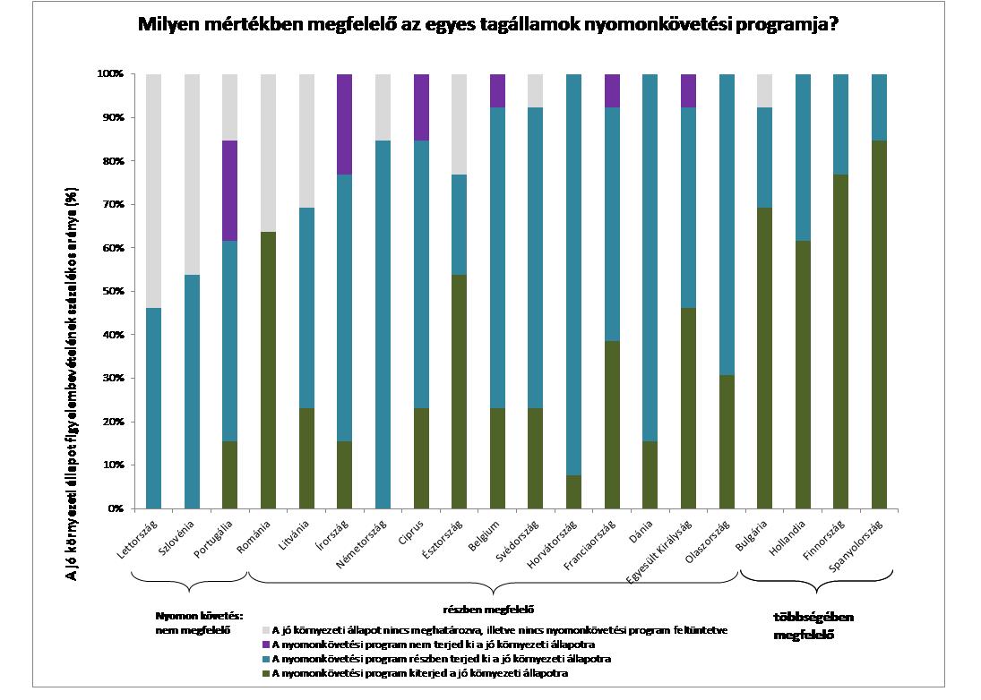 Mindazonáltal öt tagállam még nem jelentette szándékait, vagy azt nyilatkozta, hogy nyomonkövetési programjaik még 2020 – a tagállamok számára a jó környezeti állapot elérésére előírt határidő – után sem lépnek teljesen életbe.