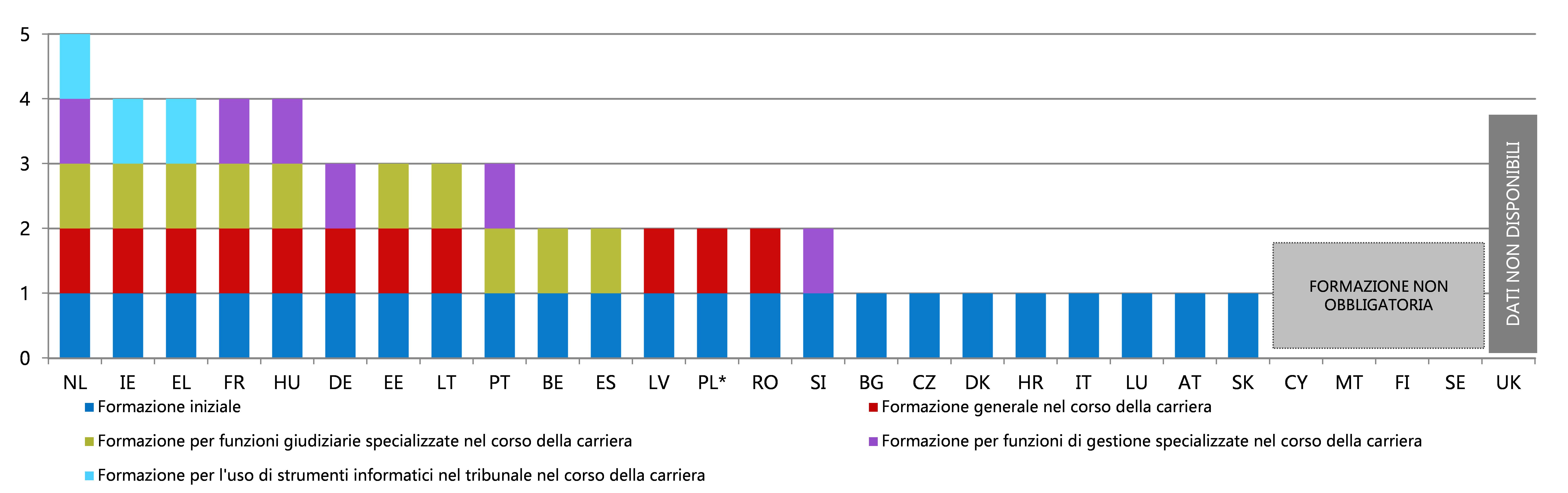 * Alcuni Stati membri non hanno organizzato formazioni obbligatorie in alcuni ambiti, ma possono organizzare formazioni facoltative.