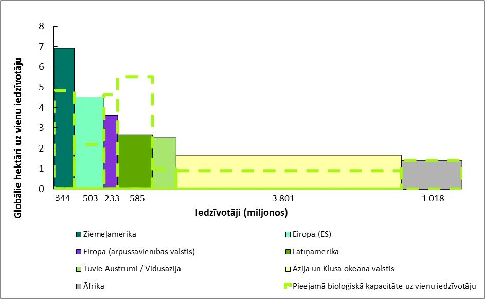 6. attēls. Ekoloģiskās pēdas nospiedums pasaules reģionos