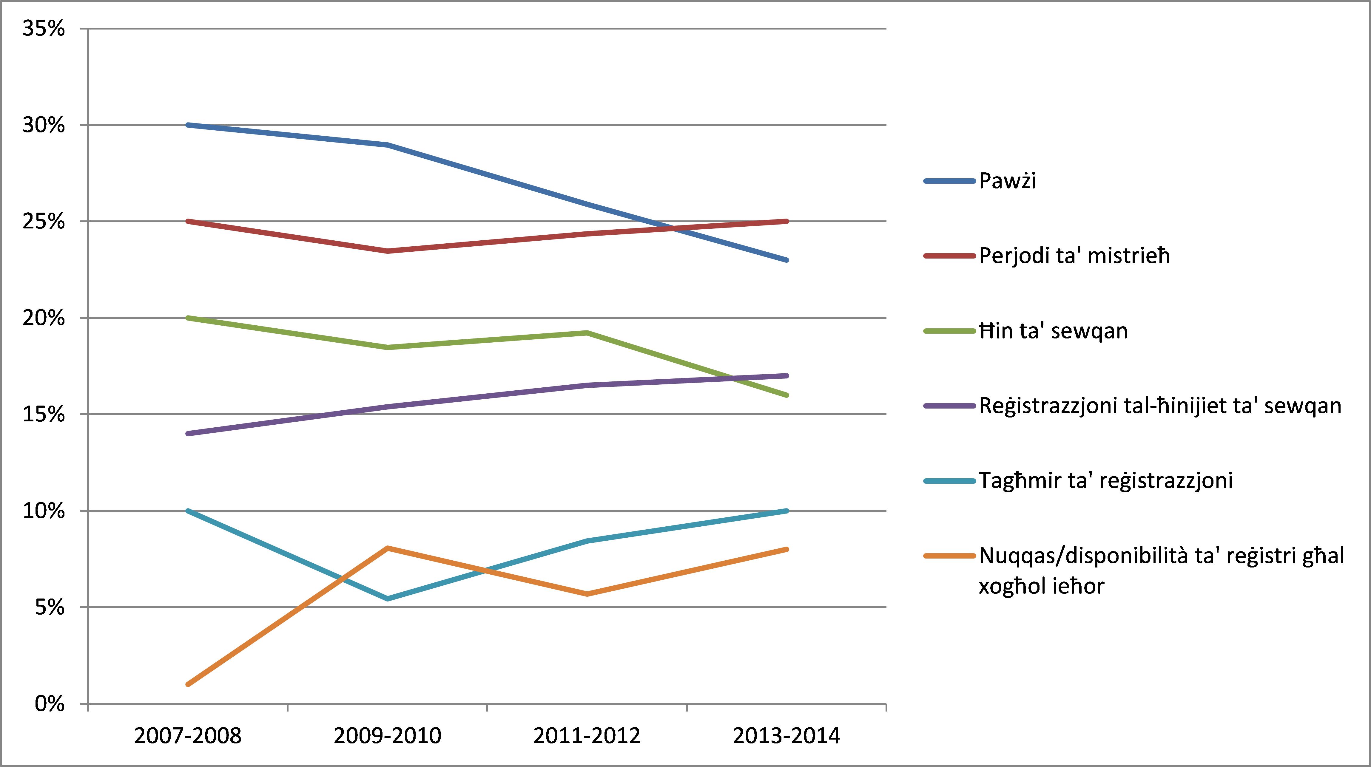 Nuqqas/disponibbiltà ta’ reġistri għal xogħol ieħor