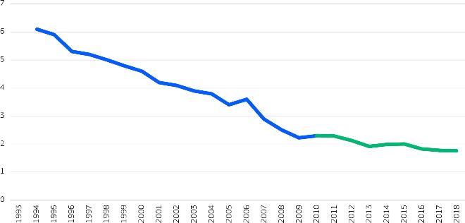 L-aħħar tliet deċennji ġabu progress sinifikanti fl-OSH: l-aċċidenti fatali fuq il-post tax-xogħol fl-UE naqsu b’madwar 70 % bejn l-1994 u l-2018 (Illustrazzjoni 1). Filwaqt li fatturi bħad-deindustrijalizzazzjoni u kura medika aħjar bla dubju kkontribwew għal dan it-tnaqqis, is-sistema tal-OSH tal-UE kellha wkoll rwol sostanzjali. Minkejja dan il-progress, xorta waħda seħħew aktar minn 3 300 aċċident fatali u 3,1 miljun aċċident mhux fatali fl-EU-27 fl-2018, u aktar minn 200 000 ħaddiem imutu ta’ kull sena minn mard relatat max-xogħol. Dan iwassal għal tbatija umana kbira. Għalhekk, iż-żamma u t-titjib tal-istandards ta’ protezzjoni għall-ħaddiema huma sfida u ħtieġa kontinwi.