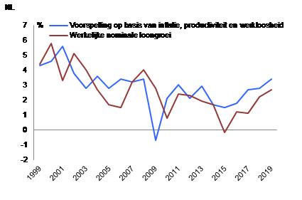 Werkelijke en voorspelde loongroei op basis van fundamentele waarden