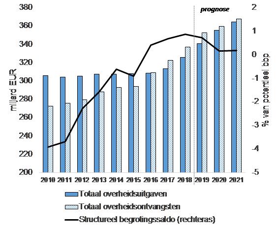 Algemene uitgaven, ontvangsten en structureel begrotingssaldo van de overheid