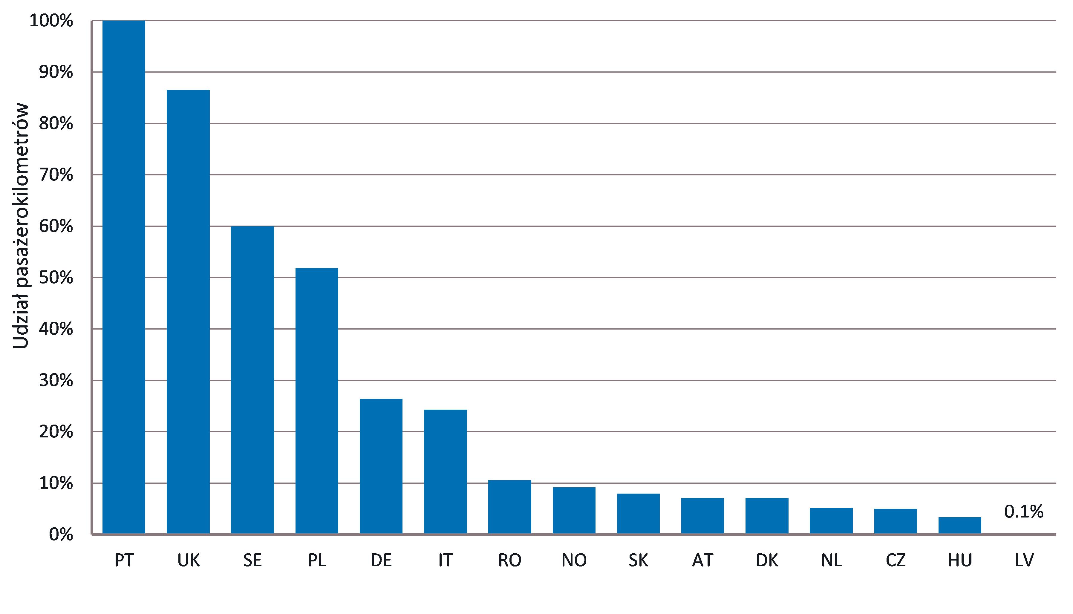 Opłaty za dostęp do infrastruktury dla konwencjonalnych długodystansowych pociągów pasażerskich (z wyłączeniem marż zysku) wynosiły w większości państw mniej niż 3 EUR na pociągokilometr.