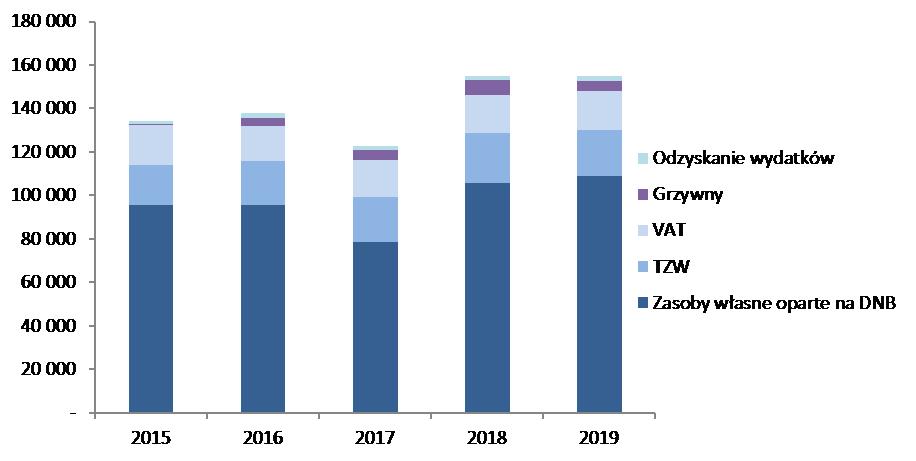 Głównymi źródłami finansowania UE są dochody z tytułu zasobów własnych, które są uzupełniane innymi dochodami. Istnieją trzy rodzaje zasobów własnych: tradycyjne zasoby własne (takie jak cła i opłaty wyrównawcze od cukru), zasoby własne oparte na podatku od wartości dodanej (VAT) oraz zasoby oparte na dochodzie narodowym brutto (DNB). Inne dochody wynikające z działań UE (np. grzywny za naruszenie zasad konkurencji) stanowią na ogół mniej niż 10 % łącznej kwoty dochodów. Całkowita kwota zasobów własnych niezbędna do sfinansowania budżetu jest uwarunkowana łączną kwotą wydatków pomniejszoną o pozostałe dochody. W obecnych WRF całkowita kwota zasobów własnych nie może przekroczyć 1,20 % łącznego dochodu narodowego brutto (DNB) państw członkowskich.