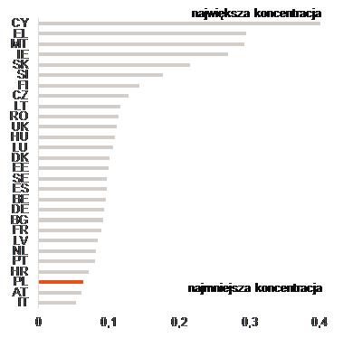 Wskaźnik koncentracji towarowej eksportu, 2018 r.