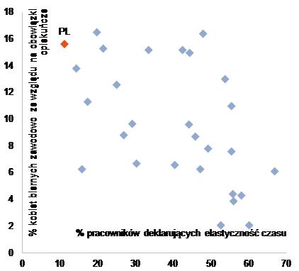 Elastyczność czasu pracy z uwagi na opiekę i brak aktywności zawodowej spowodowany obowiązkami rodzinnymi i opiekuńczymi, 2018 r.