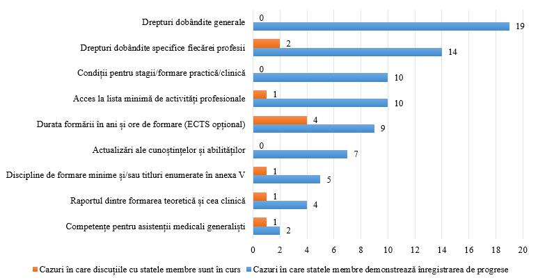 Graficul 2. Numărul de state membre vizate de aspectele-cheie ale neconformității legate de profesiile sectoriale (martie 2020)