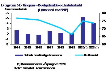 Ungern uppfyller kriteriet om den offentliga sektorns finanser. Ungern omfattas inte av något rådsbeslut om alltför stora underskott. Ungern har omfattats av förfaranden vid betydande avvikelse sedan juni 2018. Underskottet i den offentliga sektorns finanser minskade till 2,1 % av BNP 2018, jämfört med 2,5 % 2017, för att sedan minska ytterligare till 2,0 % 2019. Enligt kommissionens vårprognos 2020 beräknas det, vid oförändrad politik, öka till 5,2 % av BNP under 2020 till följd av covid-19-krisen, för att sedan minska till 4,0 % av BNP under 2021. Den 20 maj 2020 antog kommissionen en rapport i enlighet med artikel 126.3 i EUF-fördraget till följd av den planerade överträdelsen av det fördragsenliga referensvärdet på 3 % av BNP. I rapporten drogs slutsatsen att stabilitets- och tillväxtpaktens underskottskriterium inte är uppfyllt. Mot bakgrund av den nuvarande situationen anser kommissionen att inget beslut bör fattas i detta läge om huruvida Ungern ska bli föremål för ett förfarande vid alltför stora underskott. Den offentliga bruttoskuldkvoten minskade till 66,3 % av BNP under 2019 och beräknas öka till 75,0 % av BNP under 2020 och uppgå till 73,5 % av BNP under 2021. Ungern har ett välutvecklat finanspolitiskt ramverk med strikta regler och förfaranden för skuldkontroll på samtliga myndighetsnivåer. Det finanspolitiska rådet har dock en obetydlig roll i granskningen och utformningen av finanspolitiken.